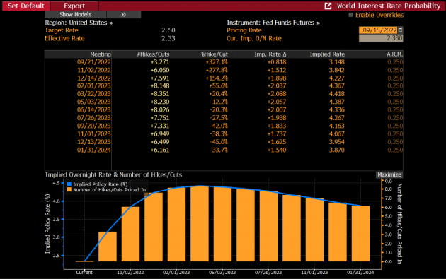 TD증권은 이번 회의에서 점도표 중간값이 올해 4.125%. 내년 4.375%로 나올 것으로 예측했습니다. 뱅크오브아메리카는 3.9%, 4.1%로 보고 있고요. 도이치뱅크는 "기준금리는 내년 초까지 4.5%까지 올려야 할 수 있다. 위험 관리까지 고려하면 5%에 가까운 금리가 필요할 수 있다. 우리는 기준금리가 내년 1분기 4.9%에서 정점을 찍을 것으로 예상한다"라고 밝혔습니다. 소파이의 리즈 영 전략가는 "9월과 10월은 힘든 달이 될 수 있으며 올해도 예외는 아니다. 다음 주 FOMC에서 새 점도표와 경제전망이 발표될 것이라는 점을 고려할 때 더 많은 급락이 발생할 수 있다. 높은 인플레이션은 더 매파적 점도표와 인플레이션, 실업률에 대한 더 높은 예측을 부를 수 있다"라고 밝혔습니다.