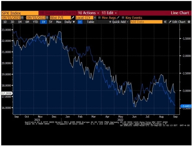 골드만삭스의 토니 파스쿼릴로 헤지펀드 담당 글로벌 헤드는 "S&P500 지수의 멀티플은 그동안 대체로 미국 금리에 맞춰 움직여왔다. 주가수익비율(P/E)에서 P(주가)가 쟁점이 되어 왔고 E(이익)는 아니었다. 하지만 지금의 경제와 기업 이익 추정치의 격차는 주식이 또 다른 평가절하 위험에 처해 있음을 시사한다"라고 밝혔습니다. 그는 "Fed는 심각한 인플레이션 문제에 처해 있고 경기를 둔화시키기 위해 유동성을 빨아내야 한다. 주식은 여전히 인질로 잡혀 있다. S&P500 지수는 높이 가려고 계속 시도하고 있지만, 일정 범위를 벗어나는 데 실패하고 있다"라고 말했습니다.