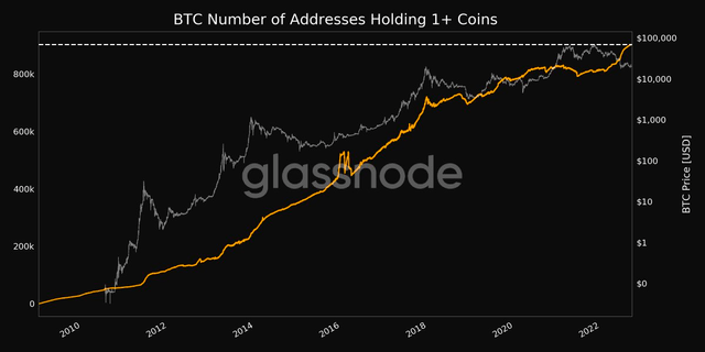 비트코인(BTC)을 1개 이상 가지고 있는 주소의 수가 이틀만에 다시 사상 최고치를 경신했다.