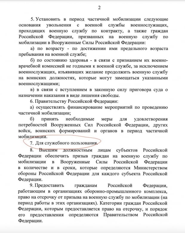 치코브에 따르면 러시아 국민들이 동원령에 대해 우려하는 사안은 제7항이다. 총 10개 항으로 이뤄진 동원령에 유일하게 구체적인 조문이 적히지 않은 부분이라서다. 동원 병력에 대해서도 구체적으로 명시된 바가 없다. 대통령이 재량권을 세르게이 쇼이구 국방부 장관에게 위임했을 뿐이다.