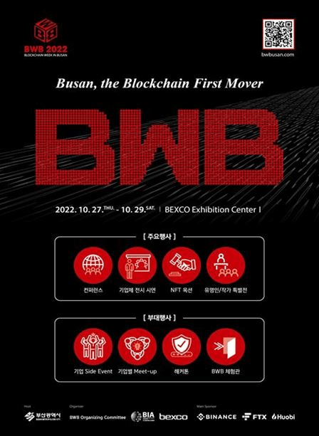 부산시가 오는 10월 27일부터 29일까지 벡스코에서 '블록체인 위크 인 부산(BWB, Blockchain Week in Busan) 2022' 행사를 개최한다.