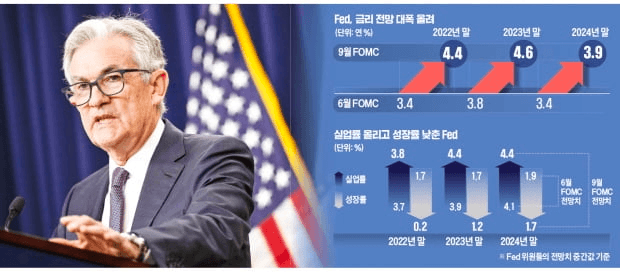미국 중앙은행(Fed)이 21일(현지시간) 시장 전망을 뛰어넘는 속도로 기준금리를 올리겠다고 선언한 것은 기대만큼 인플레이션이 잡히지 않고 있어서다. 현재 물가상승률을 꺾지 못하면 더 큰 고통을 겪어야 한다는 우려도 선제적 금리 인상에 나선 배경으로 꼽힌다. 하지만 고강도 긴축으로 경기 하강 압력이 커져 성장동력이 훼손되고 실업자가 늘어날 가능성이 크다는 우려가 나온다.