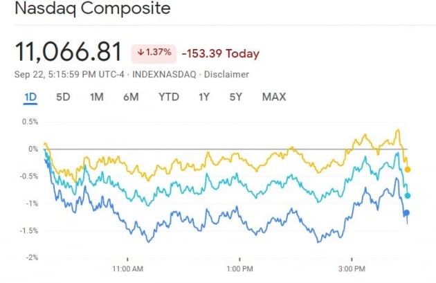 9월 연방공개시장위원회(FOMC)의 여파가 뉴욕 금융시장에 계속되고 있습니다. 예상보다 높게 제시된 점도표로 인해 22일(미 동부시간) 위험 회피 성향이 높아졌습니다. 다행인 건 무질서한 패닉이 발생한 상황은 아니라는 겁니다.