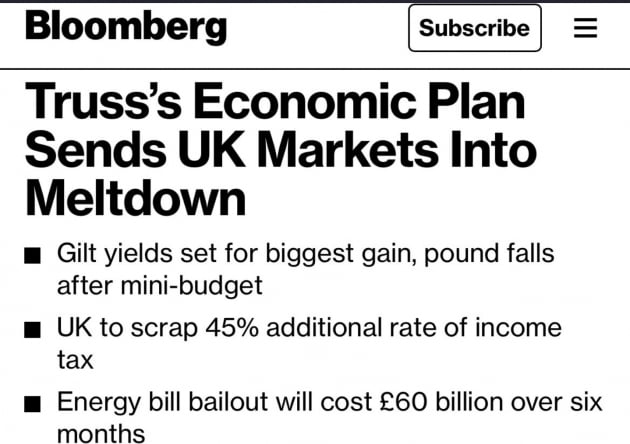 시장의 반응은 극적이었습니다. 예산안 발표 직전 3.502%였던 영국 국채 10년물은 발표 직후 3.808%로 30bp가 뛰었습니다. 2011년 이후 최고입니다. 5년물 금리는 하루 만에 최고 51bp 솟구쳤습니다. 5bp가 아니라 50bp입니다. 당연히 사상 최대 하루 상승 폭입니다. 영국 파운드화도 3% 폭락하면서 1파운드당 1.09달러까지 떨어져 37년 내 최저 기록을 갈아치웠습니다. 금리나 통화 움직임이 거의 신흥국 외환위기 초기 수준입니다. ING는 이를 '퍼펙트 스톰'이라고 표현했습니다. 골드머니의 앨라스더 맥러어드 리서치 헤드는 "감세하는 건 좋지만 정부 지출을 줄이지 않는다면 이런 일이 생기는 것"이라고 지적했습니다. 래리 서머스 전 미 재무장관은 "영국이 스스로 급락하는 이머징마켓 국가처럼 행동하고 있다. 영국은행이 커브(수익률 곡선) 뒤에 크게 뒤처진 상황에서 재정 정책마저 엉망이다. 나는 영국이 선진국 중 최악의 거시경제 정책을 추진한 나라로 오래 기억될 것으로 생각한다"라고 비판했습니다.