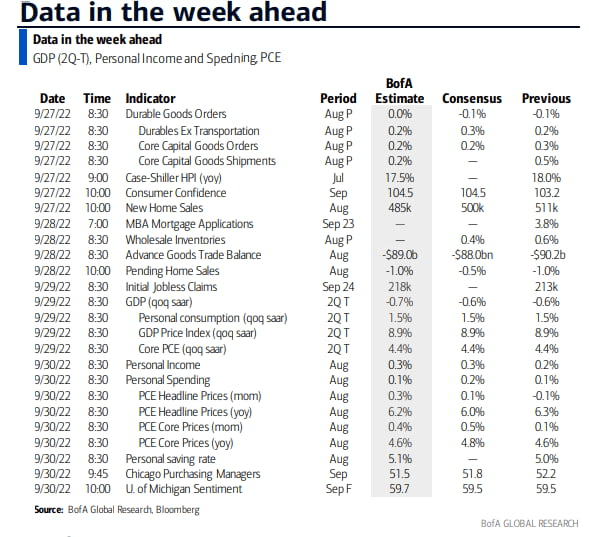 다음 주에는 금요일 8월 개인소비지출(PCE)과 PCE 물가가 나옵니다. 또 화요일 케이스·실러 주택가격 및 신규주택판매, 수요일 기존주택판매 등 주택 관련 지표가 많습니다. 제롬 파월 의장은 "주택시장이 조정을 거쳐야 할 것"이라고 밝히기도 했습니다. 파월 의장은 화요일과 수요일 아침에 연설이 예정되어 있습니다.