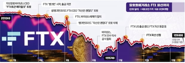 부실한 재무구조가 드러나며 유동성 위기에 빠졌던 글로벌 암호화폐거래소 FTX가 끝내 파산을 신청했다. 총부채만 많게는 500억달러(약 66조원)에 이르는 업계 사상 최대 규모의 파산이다. 금융권 안팎에선 FTX 붕괴를 2001년 희대의 회계 부정으로 파산한 미국 에너지 기업 엔론 사태에 빗대며 후폭풍을 우려하고 있다. 세계 암호화폐 시가총액은 5일 만에 192조원(18.5%) 증발했고, 증시에 상장된 관련 기업 시총도 50억달러 가까이 사라졌다.