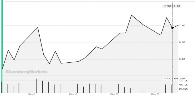 지난 30일(현지시간) 뉴욕상업거래소에서 따르면 이날 내년 1월물 미국 천연가스의 백만Btu(열량단위)당 가격은 전일 대비 4.22% 하락한 6.93달러를 기록했다. 지난 22일 이후 8일 만에 다시 이 가격이 7달러 밑으로 떨어졌다. 미국 천연가스 선물 가격은 지난 8월 말 10달러를 웃돌았다가 지난달 말 5달러대로 떨어진 뒤 11월 들어 상승세였다.