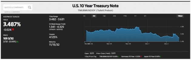 -금리 정점=미 국채 10년물 금리는 3.25%까지 하락