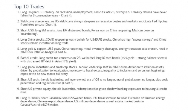 -금과 구리 매수=미국 달러의 정점, 중국 경제 재개로 금속 등 원자재 가격 상승. 신재생 에너지 전환 관련 구리 등에 투자. 인플레이션 헤지도 가능