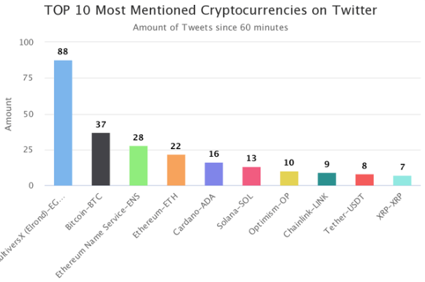 7일 가상자산(암호화폐) 마켓 데이터 플랫폼 코인트렌즈닷컴(CoinTrendz.com)에 따르면 이날 오전 9시 기준 1시간 동안 트위터에서 가장 많이 언급된 가상자산은 멀티버스X(EGLD, 88회)으로 나타났다.