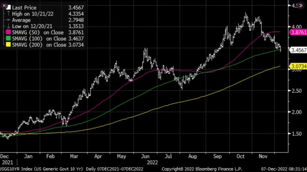 오늘 미국의 금리는 급락했습니다. 미 국채 10년물은 이제 200일 이동평균선을 깨고 3.4% 초반까지 하락했습니다.