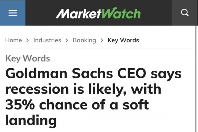 씨티그룹의 제인 프레이저 최고경영자(CEO)는 골드만삭스 주최 컨퍼런스 이틀째 회의에서 "세계 많은 나라들이 침체 환경에 빠지는 것을 보고 있고, 미국도 내년 하반기 그들을 따라갈 것"이라고 밝혔습니다. 유럽은 이미 침체에 빠졌고 미국에서도 상황이 둔화하고 있다는 것입니다. 전날 JP모건의 제이미 다이먼, 골드만삭스의 데이비드 솔로몬 등이 내놓은 경고와 비슷합니다. 웰스파고의 아즈하 이크발 이코노미스트는 오늘 보고서에서 "역전된 수익률 곡선 등 금융시장 지표를 종합하면 시장은 의심할 여지 없이 내년에 경기 침체를 예상한다"라고 주장했습니다.