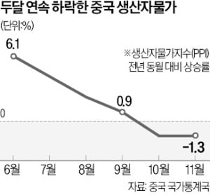 중국 국가통계국은 11월 생산자물가지수(PPI)의 전년 동월 대비 상승률이 -1.3%로 집계됐다고 9일 발표했다. 중국의 PPI 상승률은 지난 10월에도 -1.3%를 나타내 코로나19 사태 충격이 이어지던 2020년 12월(-0.4%) 이후 22개월 만에 마이너스로 떨어졌다.