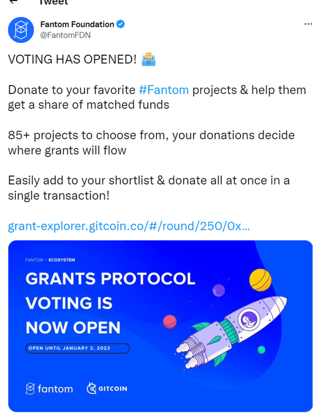 레이어1 블록체인 플랫폼 팬텀(FTM) 재단이 12일(현지시간) 공식 트위터를 통해 기존 중앙집중식 자금지원 프로그램인 깃코인 그랜트(Gitcoin Grants) 프로토콜을 공식 적용했다고 발표했다.