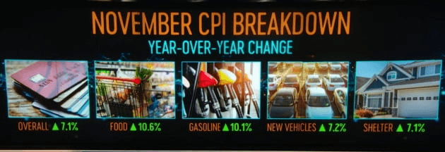 그만큼 11월 CPI 보고서는 모든 면에서 월가 예상보다 좋았습니다. 헤드라인 수치가 7.1%로 나왔는데 특히 전월 대비 상승률이 0.1%에 그쳤습니다. 예상은 각각 7.3%, 0.3%였지요. 또 에너지와 식품을 제외한 근원 물가도 6.0%, 0.2% 상승한 것으로 집계됐습니다. 역시 예상 6.1%. 0.3%보다 낮습니다. 베스포크 인베스트먼트에 따르면 전월 대비 상승률이 0.1%를 유지할 경우 내년 3월이면 헤드라인 CPI가 4%대로, 5월이면 3%대로 떨어질 수 있습니다.