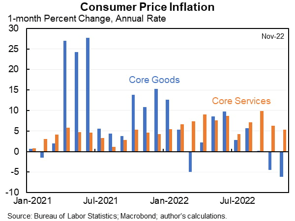 파월 의장은 지난 11월 30일 브루킹스 연구소 연설에서 주거비를 제외한 서비스 가격 추세는 더 넓은 인플레이션 압력을 반영하며 인플레이션의 미래 경로를 측정할 때 중요하다고 지적했습니다. 그는 "임금이 이런 서비스를 제공하는 데 가장 큰 비용을 차지하기 때문에 노동 시장은 이 범주의 인플레이션을 이해하는 열쇠를 쥐고 있다"라고 밝혔습니다.