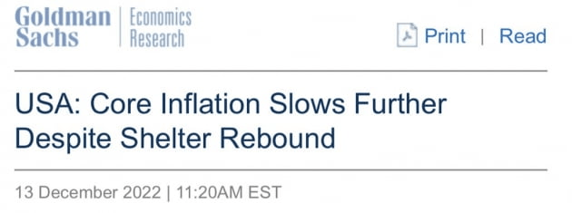 감소하는 인플레이션은 미국인들의 실질 소득을 높입니다. 소비가 이어질 수 있습니다. 게다가 휘발유 가격이 하락했습니다. 골드만삭스는 "휘발유 가격이 정점에서 배럴당 50달러 하락하면서 소비자들은 연간 7500억 달러의 소비 여력을 더 얻는다"라고 지적했습니다. 또 모기지 금리는 6% 초반까지 내려왔습니다. 이는 인플레이션 내림세를 느리게 만들 수 있습니다. 제프리스의 아네타 마코스카 수석 이코노미스트는 CPI를 보고 내년 2월 50bp 인상에 대한 예측을 25bp로 바꿨습니다. 그는 "Fed가 2월에 25bp를 올릴 가능성이 충분하지만, 그들이 인플레이션을 잡을 때까지 충분하다고 느낄 때까지 계속 25bp씩 올릴 것"이라고 주장했습니다.
