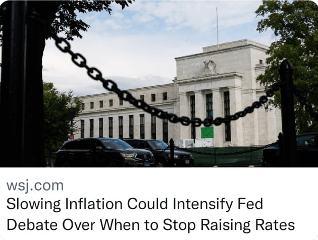 'Fed의 비공식 대변인'인 월스트리트저널(WSJ)의 닉 티미라오스 기자는 '둔화하는 인플레이션이 금리 인상을 언제 중단할지 Fed 내부 논쟁을 격화시킬 수 있다'(Slowing Inflation Could Intensify Fed Debate Over When to Stop Raising Rates)라는 기사에서 "Fed는 높은 인플레이션에 맞서기 위해 수요일에 기준금리를 50bp 인상할 계획이지만, 2개월 연속 물가 압박이 완화되면서 내년 초 금리를 얼마나 인상할지에 대한 위원들의 심의는 복잡해질 수 있다"라고 썼습니다. 그는 며칠 전 Fed 내부의 비둘기파와 매파 간 분열이 생기고 있다고 지적했는데, 그 균열은 더욱 커질 수 있습니다.