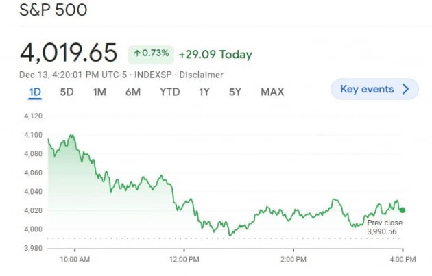 13일(미 동부시간) 아침 8시 30분 미국의 11월 소비자물가(CPI)가 발표된 뒤 뉴욕 금융시장 반응은 폭발적이었습니다. 0.6%가량 오르던 주가지수 선물은 순식간에 2%대로 상승 폭을 키웠고, 채권 금리는 20bp가량 급락했습니다.