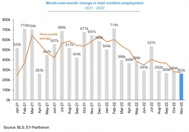 그는 내일 이런 기조를 유지할 것입니다. 11월 신규고용은 여전히 26만3000개나 증가했습니다. 모건스탠리는 "이제부터는 CPI가 아니라 노동 시장이 핵심 지표가 될 수 있다. 인플레이션의 하락 추세가 확고해짐에 따라 FOMC는 노동 시장을 정면으로 응시할 것이다. 내일 50bp 인상은 이미 시장에 밝힌 것이고 이번 물가는 2월에 25bp 인상을 위한 토대를 만들었다. 만약 월간 신규고용이 월 10만 개 수준을 향해 감소한다면 우리는 3월 FOMC에서 금리 인상 중단을 예상한다. 이는 최종금리를 4.625%(4.5~4.75%)로 만들 것"이라고 주장했습니다. 네드 데이비스 리서치는 "근원 상품과 근원 서비스 인플레이션 간의 차이는 공급 측면의 개선, Fed의 긴축, 팬데믹 이후 소비자 수요가 상품에서 서비스로 이동하고 있음을 반영한다. 노동 시장 여건이 여전히 빡빡하고 임금 상승률이 여전히 강한 상황에서 서비스 인플레이션은 더 오래 지속하다가 2023년에 점진적으로 후퇴할 것으로 예상한다. (예상대로) 내년 3월에 긴축이 중단되어도 기준금리는 높은 수준을 유지할 가능성이 크다"라고 지적했습니다.