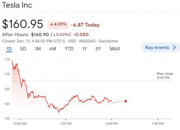 금리가 하락하면서 나스닥 기술주들은 크게 올랐습니다. 하지만 테슬라는 예외였습니다. 4.09%나 내리면서 2년 만에 최저로 떨어졌습니다. 시가총액은 한때 2020년 11월 이후 처음으로 5000억 달러 아래로 내려갔습니다(종가 기준 5043억 달러). 블룸버그에 따르면 현 주가는 예상 수익의 29배에 거래되고 있습니다. S&P500 지수의 예상 수익 17배를 훨씬 상회하지만 2010년 상장 이후 최저입니다.