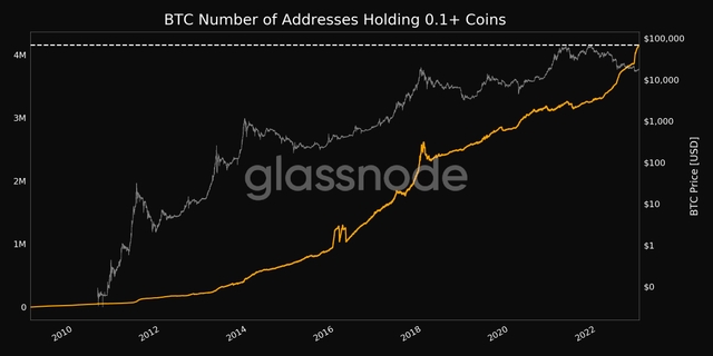 0.1BTC 이상 보유 주소 수, 사상 최대…"415만개 돌파"수정 오전 2:22 · 2022. 12. 15.입력 오전 2:21 · 2022. 12. 15.기사출처이영민 기자00공유하기링크 복사텔레그램엑스카카오톡0.1BTC 이상의 코인을 보유한 주소의 수가 사상 최대치를 기록했다.글래스노드 데이터에 따르면 15일(현지시간) 기준 0.1BTC 이상의 코인을 보유한 비트코인 주소는 415만2583개다.BTC이영민 기자20min@bloomingbit.io안녕하세요 블루밍비트 기자입니다.