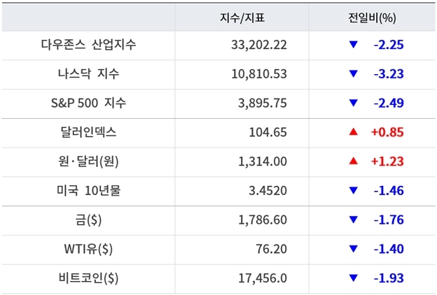 이날 국채 금리는 하락했다. 연준 통화정책에 민감한 미국 2년물 국채금리는 장중 4.196%까지 떨어지며 4.2%선을 밑돌았다. 글로벌 장기시장금리 벤치마크 역할을 하는 미국 10년물 국채금리는 장중 3.428%까지 떨어졌다.