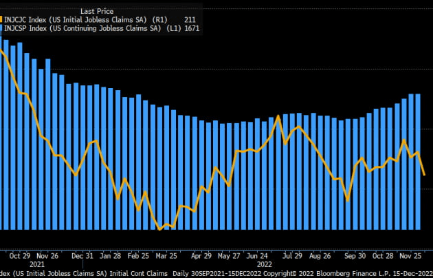 지난 10일로 끝난 신규 실업 급여 청구 건수는 전주보다 2만 건 줄어든 21만1000건으로 떨어졌습니다. 예상(23만2000건)을 큰 폭으로 밑돈 것으로 석 달 만에 최저 수준입니다. 또 계속 실업보험 청구 건수는 167만1000건으로 거의 변동이 없었습니다. 찰스 슈왑의 캐시 존스 채권 전략가는 "노동시장은 Fed에게 여전히 너무 빡빡한 상태로 남아 있다"라고 말했습니다.