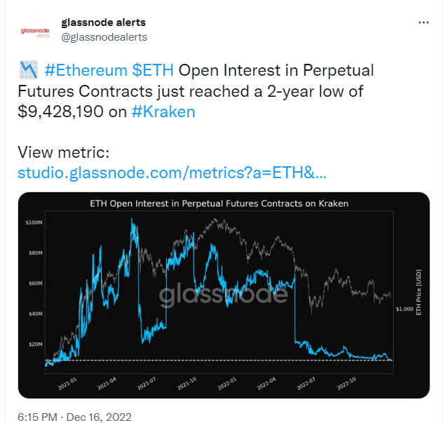 크라켄, 이더리움(ETH) 무기한 선물 미결제 약정 규모 2년래 최저 기록
