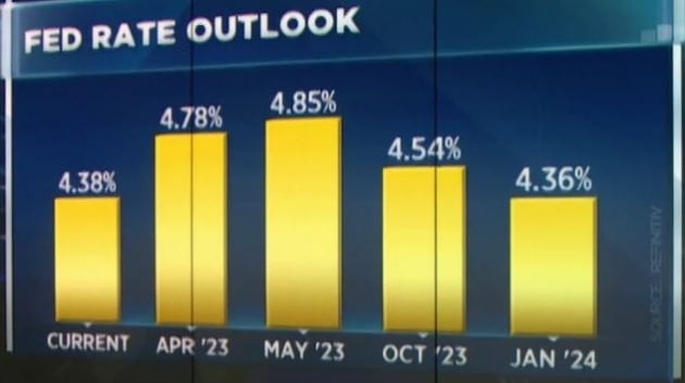 채권 시장에서도 계속 Fed를 믿지 않는 움직임이 이어졌습니다. 통상 기준금리를 좇아가는 미 국채 2년물 금리는 오후 3시 7분께 6bp나 하락한 4.208%에 거래됐습니다. 한때 4.166%까지 내리기도 했습니다. 또 시카고상품거래소(CME) Fed 워치 시장의 내년 최종금리에 대한 예상은 4.85%로 여전히 5%를 훨씬 밑돌고 있습니다. 여전히 내년 하반기 50bp 금리 인하에 베팅하고 있습니다.
