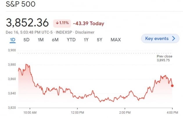 주요 지수는 온종일 마이너스권에 머물렀습니다. S&P500 지수는 한때 1.7% 넘게 하락하기도 했습니다. 오후 3시 들어 소폭 오르락내리락하더니 결국 1.11% 내린 채 거래를 마쳤습니다. 또 다우 지수는 0.85%, 나스닥은 0.97% 떨어졌습니다.
