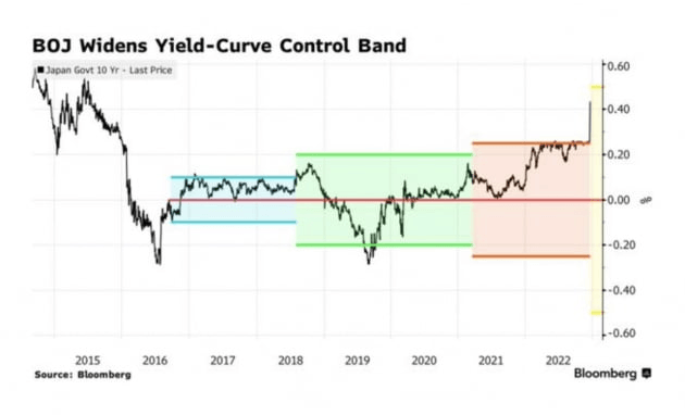 20일(미 동부시간) 뉴욕 금융시장의 가장 큰 이슈는 일본은행이 수익률 곡선 통제(YCC) 정책을 갑자기 조정한 것이었습니다. 금융정책결정회의에서 예상을 깨고 일본 국채 10년물의 금리 변동 폭을 ±0.25%에서 ±0.5%로 높임으로써 사실상 장기 금리를 인상한 것입니다.