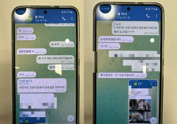 블루밍비트가 입수한 메타콩즈 경영진과 성매매 브로커 추정 A씨의 텔레그램 단체 대화방 대화 내역(사진=양한나 기자)