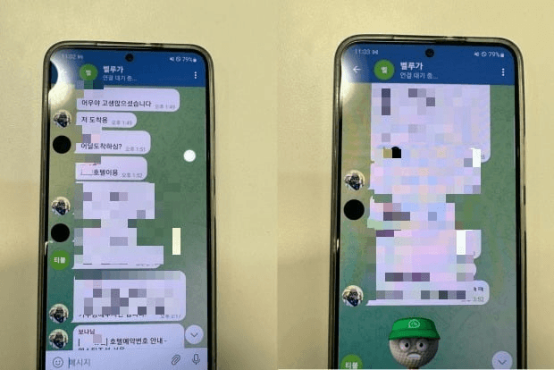두 사람은 왜 100여차례에 걸쳐 '법인카드'를 통해 특급호텔을 드나들었을까. 가장 의심되는 이유는 성매매다. 블루밍비트가 입수한 황현기 COO의 법인 휴대폰의 텔레그램 대화내역에서 성매매 브로커로 의심되는 A씨와 이강민 대표, 황 COO 등의 대화 흔적이 발견됐기 때문이다.