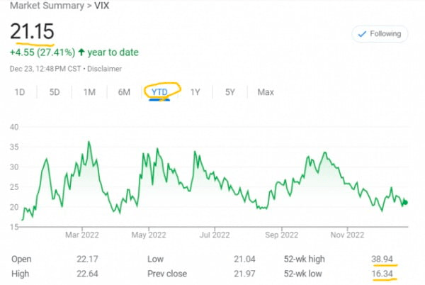 VIX는 올 들어 등락을 거듭해왔다. 현재 21 수준이다. 52주 최고치는 우크라이나 개전 직후였던 지난 3월 초의 38이었다.