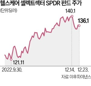 헬스케어 업종 주가는 올해 약세장에서도 비교적 선방했다. S&P500 헬스케어지수는 올 들어 23일까지 3.4% 하락했다. 같은 기간 S&P500지수는 19.8% 떨어졌다. 헬스케어 주요 ETF로 431억달러(약 55조원)를 운용 중인 '헬스케어 셀렉트섹터 SPDR 펀드(XLV)'는 연초(1월 3일) 대비 2.4% 내렸다.