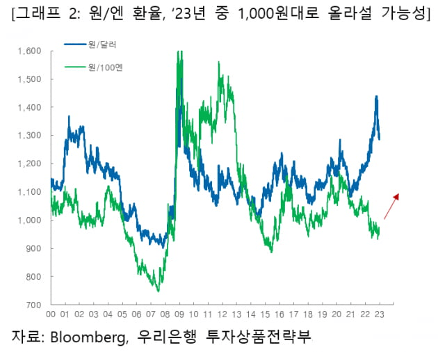 3. 원/엔 환율, '23년 중 1,000원 수준으로 올라설 가능성 높아
