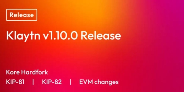 27일(현지시간) 클레이튼 팀은 공식 채널을 통해 "KIP-81에서 제안된 온체인 거버넌스 투표 기능, KIP-82에서 제안된 거버넌스 카운슬 보상구조 개편, EVM 변경 사항 등을 포함한 신규 v1.10.0 '코어' 하드포크를 배포한다"라고 발표했다.