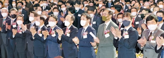 이석준 농협금융그룹 회장과 한용구 신한은행장, 이승열 하나은행장, 김성태 기업은행장, 황병우 대구은행장도 취임 후 첫 공식행사에 모습을 보였다.