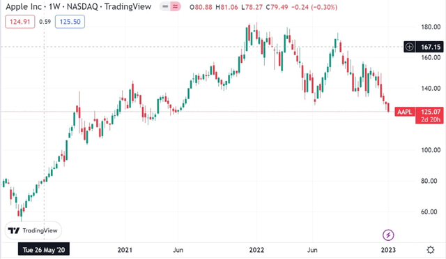 전 세계에서 유일하게 시가총액 2조달러를 유지해왔던 애플의 주가는 125달러선까지 하락하며 52주 신저가를 갈아치웠다.