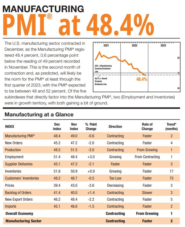미국 공급관리협회(ISM)가 집계하는 11월 제조업 구매관리지수(PMI)가 48.4%를 기록했다. 이는 월가 예상치 48.5%를 소폭 하회하는 수치다.