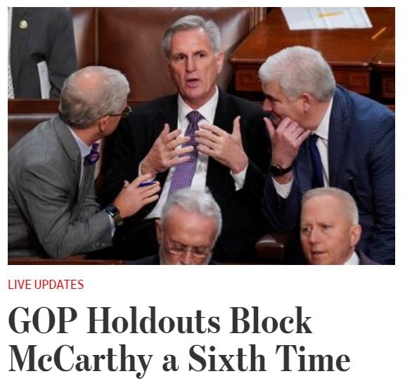 워싱턴의 상황은 점점 더 꼬여가고 있습니다. 제118대 미국 의회의 의장을 뽑기 위한 투표가 어제 세 차례, 오늘 세 차례 진행된 가운데 여전히 당선자가 나오지 않고 있습니다. 하원 다수당을 차지한 공화당의 리더인 케빈 매카시 원내 대표는 여전히 간신히 201~202표를 얻고 있습니다. 공화당 의석이 222석이고 하원의원의 과반인 218표를 얻으면 당선되는데, 공화당 내 강경파가 바이든 정부 견제에 필요한 의사규칙 변경, 핵심 위원회 임명 등을 요구하면서 반란을 일으킨 것입니다. 이들 중 일부는 2020년 1월 6일 의사당 점거 사태를 "방문"이라고 부르는 사람입니다. 도널드 트럼프 전 대통령까지 나서 "매카시를 지지하라"라고 했지만, 강경파는 흔들리지 않고 있습니다. 그들은 매카시가 올해 예산 1조7000억 달러 증액을 허용한 것을 비난하고 있고, 올해 연방정부 부채한도를 높이지 못하도록 하는 걸 주요 목표로 삼고 있습니다.