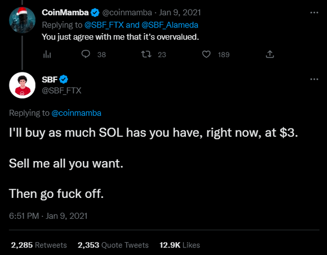 샘 뱅크먼 프리드의 트윗 게시물