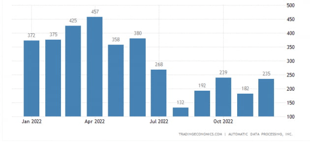민간고용업체 ADP가 발표한 12월 민간 고용은 23만5000명 증가했습니다. 11월(12만7000명)이나 월가 예상(15만3000명)보다 훨씬 많았습니다. 대기업(직원 500명 이상)의 고용은 15만1000명 감소했지만, 중기업(50~249인)과 소기업(49인 이하)이 각각 15만9000명과 19만5000명 고용을 늘렸습니다.