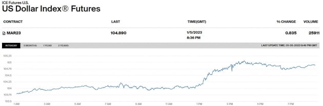 Fed의 움직임을 잘 반영하는 달러 값도 상승했습니다. ICE 달러인덱스는 다시 105선을 넘기도 했습니다.