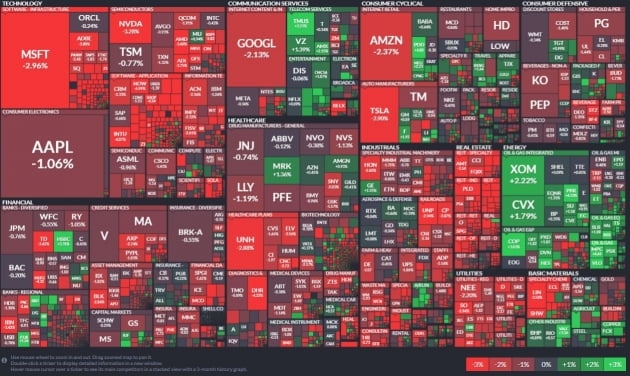 전날 반등했던 애플(-1.06%), 테슬라(-2.89%)는 다시 반등세가 꺾였습니다. 마이크로소프트(-2.98%)는 이틀째 급락세를 이어갔습니다. 어제 중국 정부가 반도체 산업 지원을 재고하고 있다는 블룸버그 보도에 급등했던 반도체주들도 큰 폭으로 떨어졌습니다. 엔비디아는 3.25% 내렸고 AMD -3.59%, 마벨 -5.19%, 퀄컴 -1.91%, NXP -2.82% 하락했습니다.