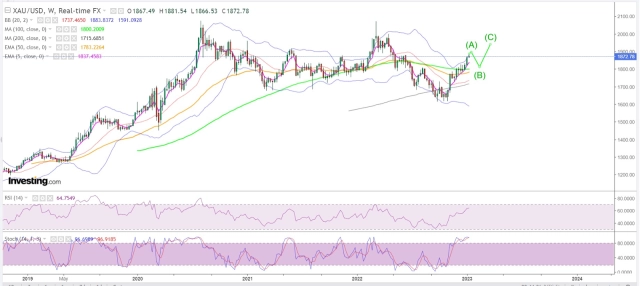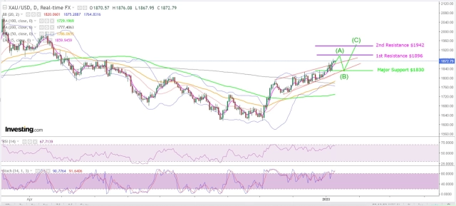 SKCharting.com의 수석기술전략가인 수닐 쿠마르 딕싯(Sunil Kumar Dixit)에 따르면, 연준 위원들의 여러 가지 발언도 불구하고 12월 CPI가 6.5%를 하회하고 달러 지수가 103 아래로 떨어진다면, 이 두가지는 금 가격을 1,900달러 영역으로 탄탄하게 상승시키는 촉매 요인이 될 것이다.