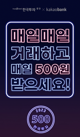이벤트 기간인 1월 31일까지 카카오뱅크 국내 주식 투자 서비스 이용 고객은 하루 1주 이상 주식을 매매한 날마다 다음 영업일에 500원을 지급 받는다.