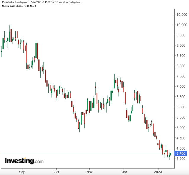 하지만 하락세가 강화되면서, 이제는 천연가스 가격이 어디까지 떨어질지가 궁금해졌다.