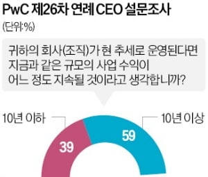 설문조사에서 CEO의 39%는 현재 추세로 기업을 운영한다면 향후 10년 내 경제적으로 생존할 수 없을 것이라고 답했다. PwC는 "CEO들이 당면하고 있는 어려움을 단적으로 보여주는 수치"라며 "대다수 CEO는 미래를 위한 비즈니스 혁신이 반드시 필요하다고 인정했다"고 분석했다. 그러면서 "고객 수요와 규제가 변하고 있는 상황에서 기술력이 부족한 기업은 생존하지 못할 수 있다"고 지적했다.